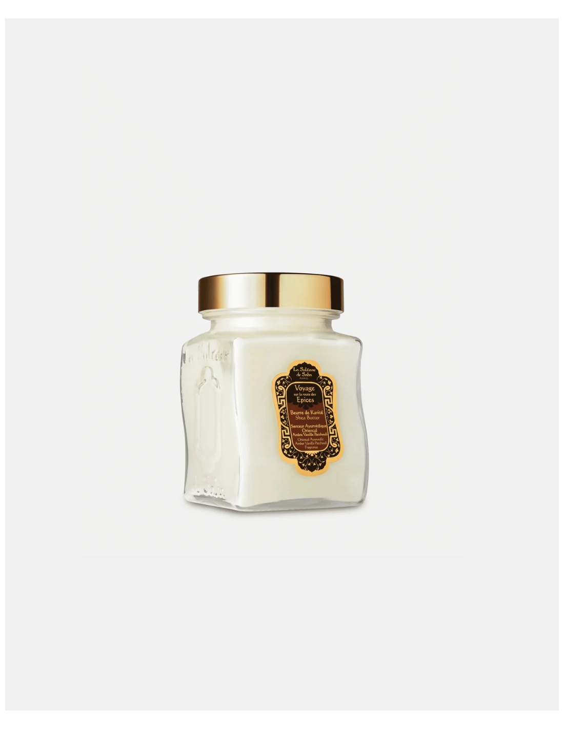 - Masło shea zostało wzbogacone o niepowtarzalną ajurwedyjską kompozycję zapachową z nutami bursztynu, paczuli i wanilii.