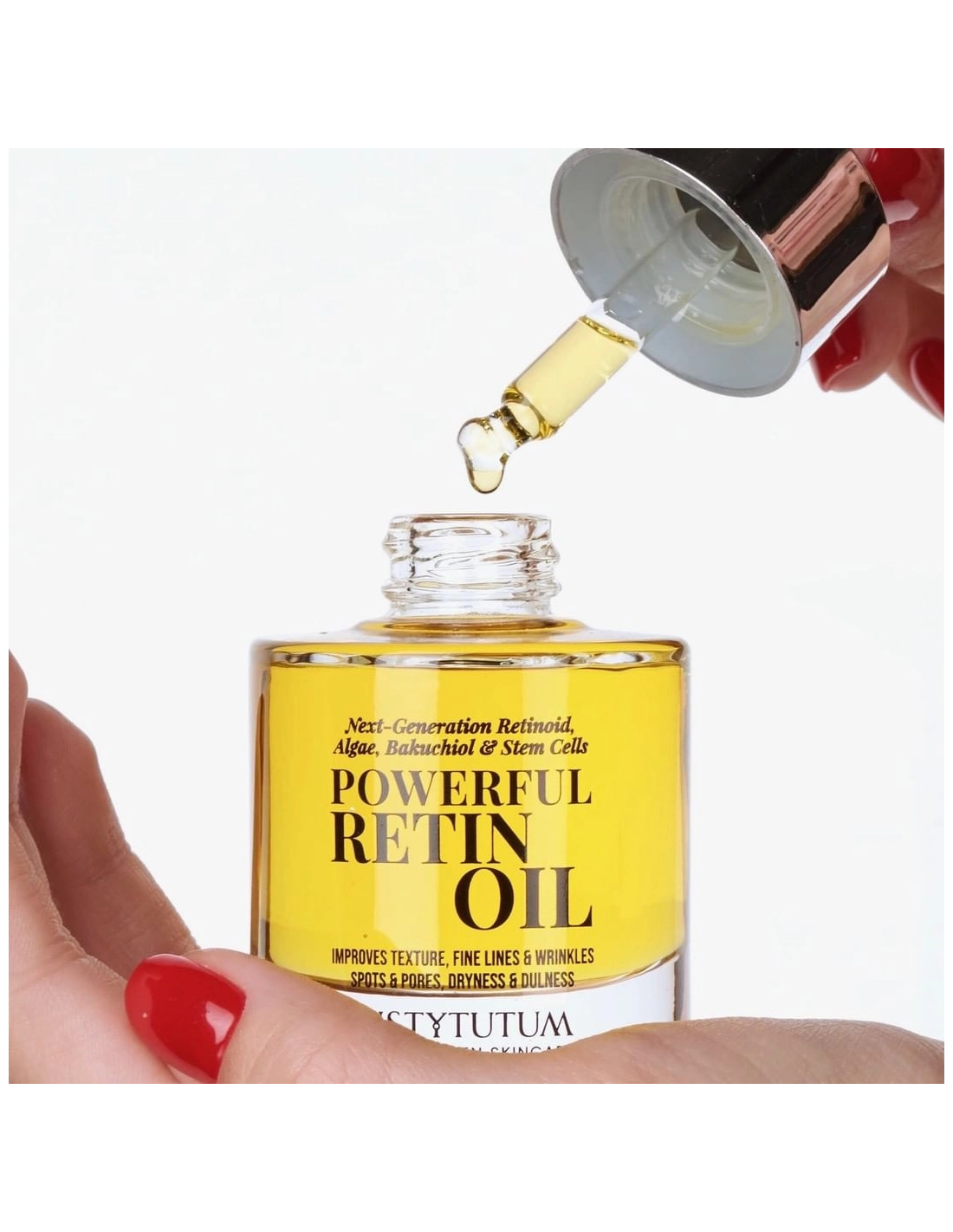 Marka Instytutum stworzyła wyjątkowy produkt pielęgnacyjny na bazie 15 olejków eterycznych, który zwalcza jednocześnie niemal wszystkie problemy skóry, szczególnie w okresie mroźnej zimy. Kosmetyk zawiera retinol, bakuchiol i ekstrakt z alg, które działają silnie przeciwstarzeniowo i antyoksydacyjnie, wygładzają zmarszczki oraz uelastyczniają i wygładzają skórę. Komórki macierzyste maliny działają również na dobrą strukturę skóry: utrzymują wilgotność, jędrność i elastyczność naskórka. Potężny olejek RetinOil odnowi poszarzałą i zmęczoną skórę, natychmiast doda jej energii życiowej, gładkiej tekstury i niezrównanego blasku.