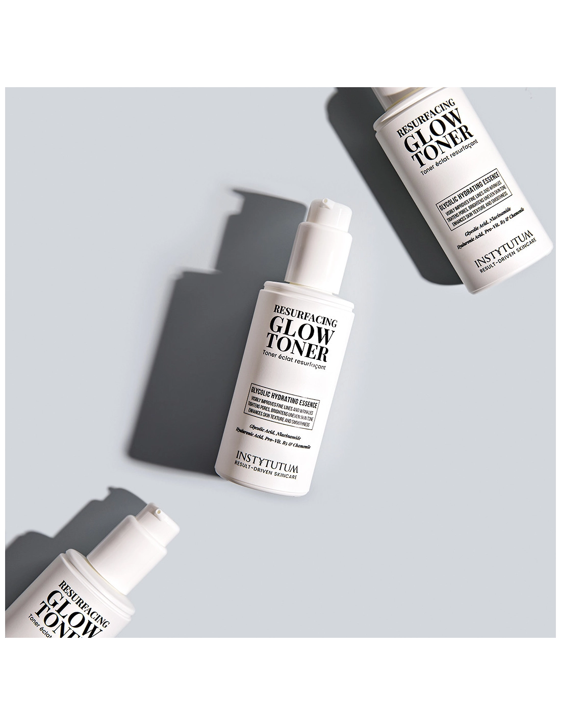 Resurfacing Glow Toner zawiera 6% kwasu glikolowego i 2% nikotynamidu, dzięki czemu delikatnie złuszcza powierzchnię skóry. Widocznie wygładza drobne linie i zmarszczki, zwęża pory, wyrównuje nierówny koloryt skóry, sprawia, że staje się ona gładsza, czystsza i bardziej promienna. Skutecznie ogranicza wydzielanie sebum i redukuje ilość niedoskonałości. Alantoina, rumianek i prowitamina B5 łagodzą skórę, a kwas hialuronowy nadaje jej elastyczność i nawilżenie.Przywraca zaburzoną równowagę pH naskórka, utrzymuje jego witalność i działa silnie odświeżająco. Produkt przyczynia się do normalizacji metabolizmu, co korzystnie wpływa na odnowę komórkową, syntezę białek tkanki łącznej, mikrokrążenie krwi i pracę gruczołów łojowych.