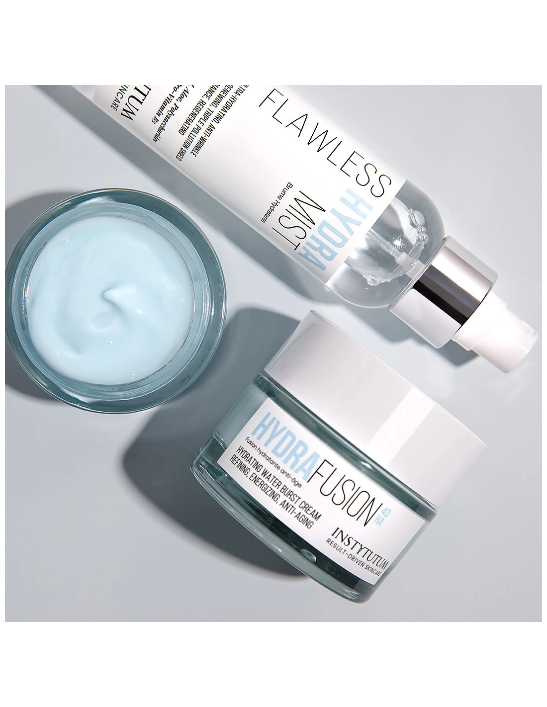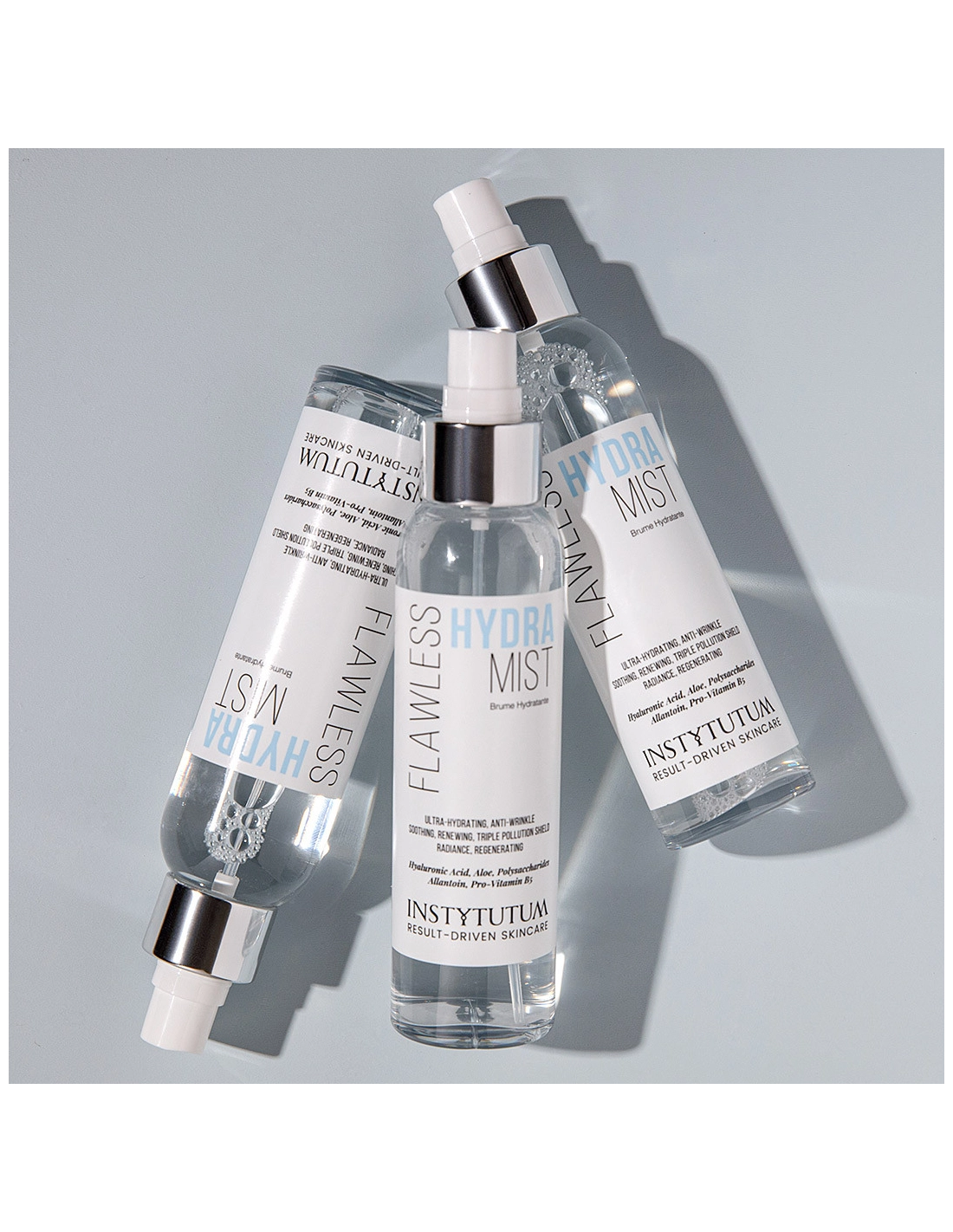 Instytutm Flawless Hydra Mist widocznie redukuje drobne linie i zmarszczki, przywraca skórze twarzy gładkość, elastyczność i blask. Błyskawicznie się wchłania i maksymalnie nasyca wilgocią matową i suchą skórę. Tworzy ochronę przed trzema rodzajami zanieczyszczeń i czynnikami środowiskowymi, zatrzymuje wilgoć w naskórku oraz tworzy na powierzchni skóry nawilżającą, łagodzącą warstwę. Eliminuje suchość i sprawia, że koloryt skóry jest jaśniejszy, świeższy i młodszy. Zawiera kwas hialuronowy o niskiej masie cząsteczkowej, który lepiej wchłania się w skórę. Zapewnia natychmiastowe intensywne nawilżenie, na długo przywraca poziom nawilżenia skóry, wygładza jej teksturę oraz widocznie redukuje drobne linie i zmarszczki.
