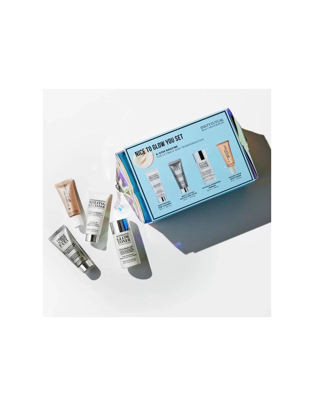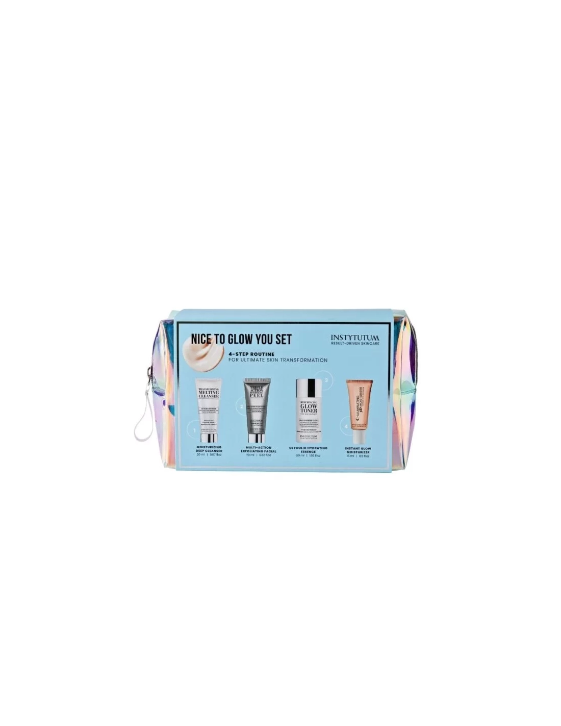 Zestaw INSTYTUTUM Nice To Glow You - to zestaw najlepiej sprzedających się miniaturek zapewniających kompleksową pielęgnację urody w 4 krokach i oszałamiający blask skóry.