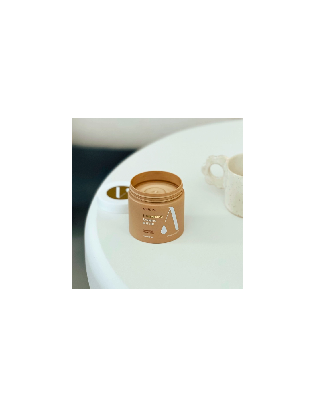 Azure Tan to nie tylko piękna opalenizna, ale także zdrowa i odpowiednio nawilżona skóra! Nasze stopniowo opalające masło do ciała szybko się wchłania, intensywnie nawilża i otula skórę wyjątkowym kokosowo-kakaowym zapachem, który wprowadza w stan błogiego ukojenia. Dzięki zawartości naturalnej miki masło subtelnie rozświetla skórę, podkreślając jej naturalną opaleniznę.